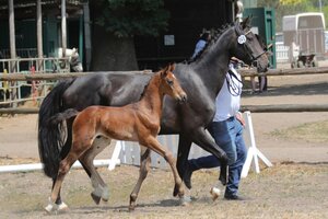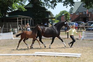 Nach der gelungenen Kombi-Zuchstutenprüfung am Vortage war nun die Fohlenschau der zweite Höhepunkt des diesjährigen großen Schau-Wochenendes des Hannoveraner Vereins Schleswig-Holstein auf dem Hof Hellmold.